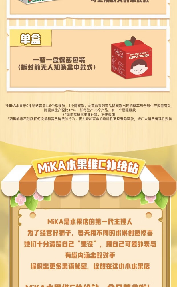 MIKA·维C补给站系列盲盒潮玩玩具摆件七夕情人节礼物单个盲盒随机发(拍8个发整盒)