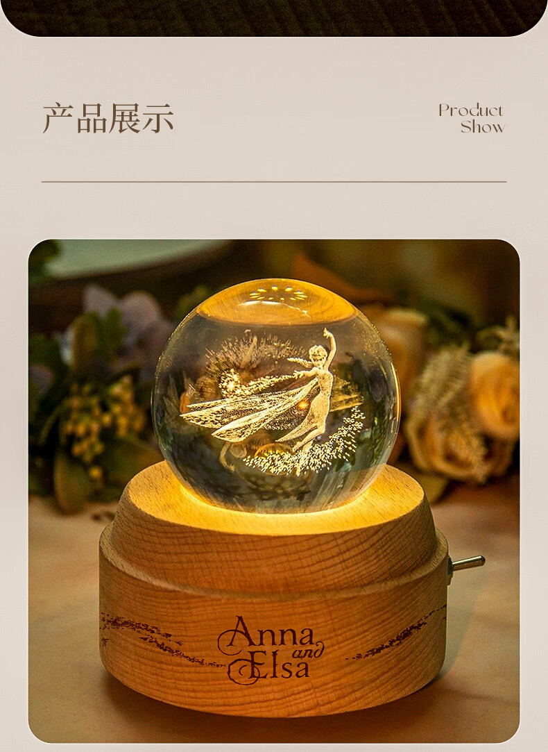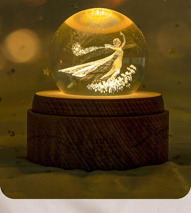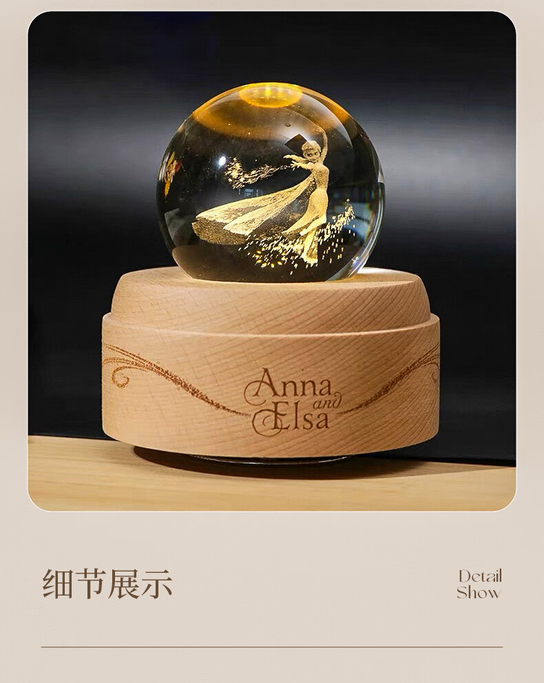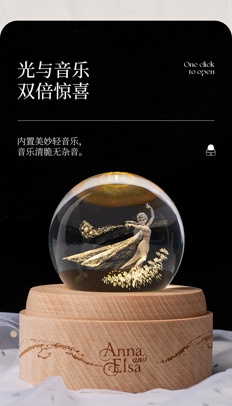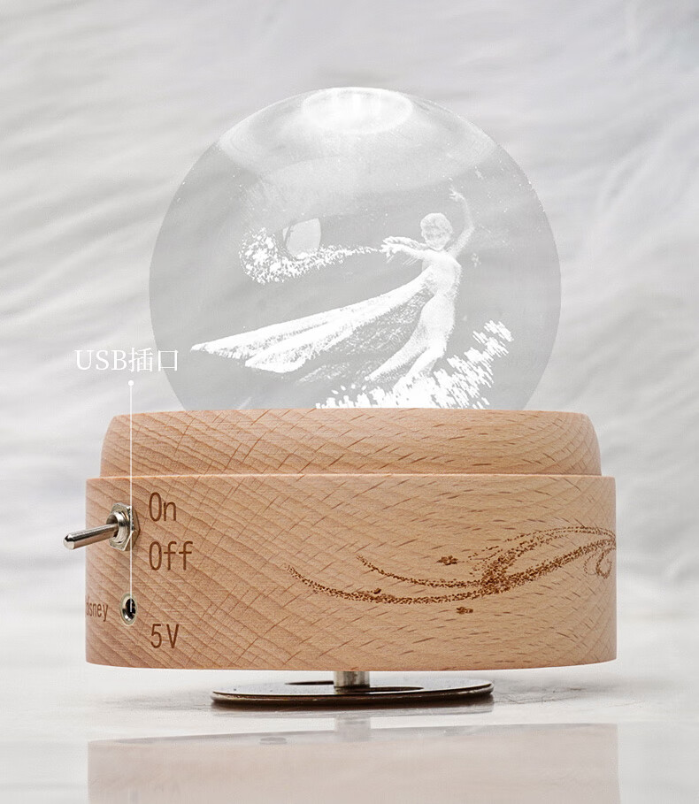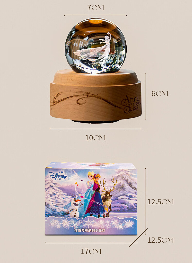 迪士尼水晶球音乐盒爱莎公主八音盒旋转玩具女孩礼物生日小夜灯桌面摆件