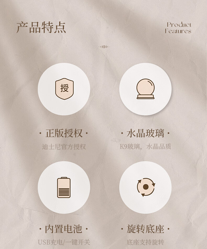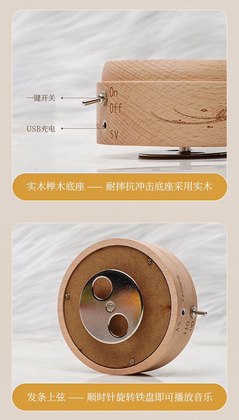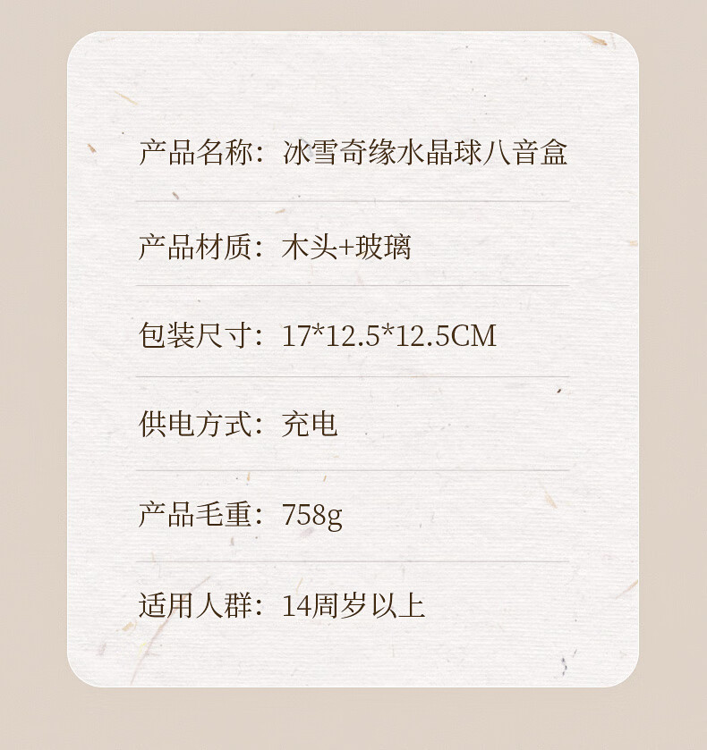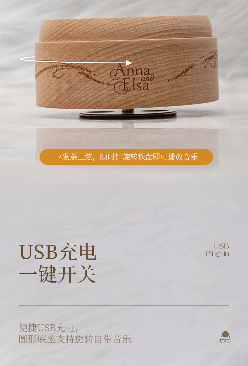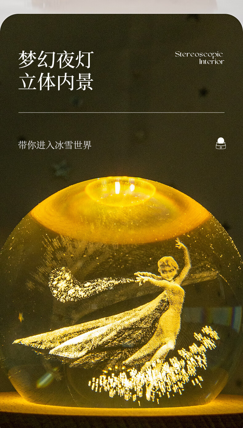 迪士尼水晶球音乐盒爱莎公主八音盒旋转玩具女孩礼物生日小夜灯桌面摆件