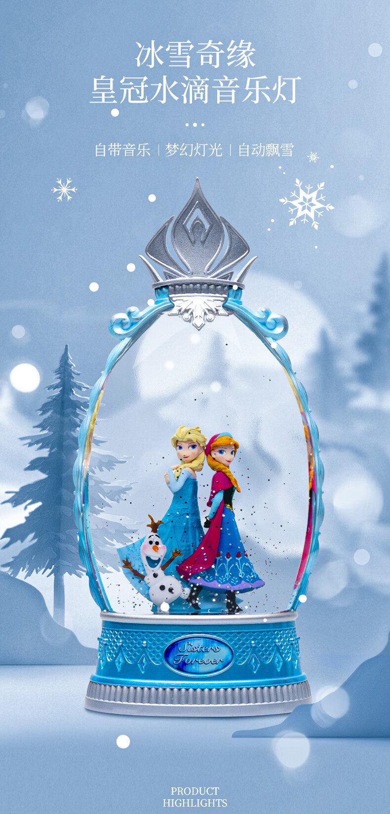 迪士尼玩具女孩音乐盒艾莎公主皇冠八音盒女生礼物冰雪奇缘创意桌面摆件