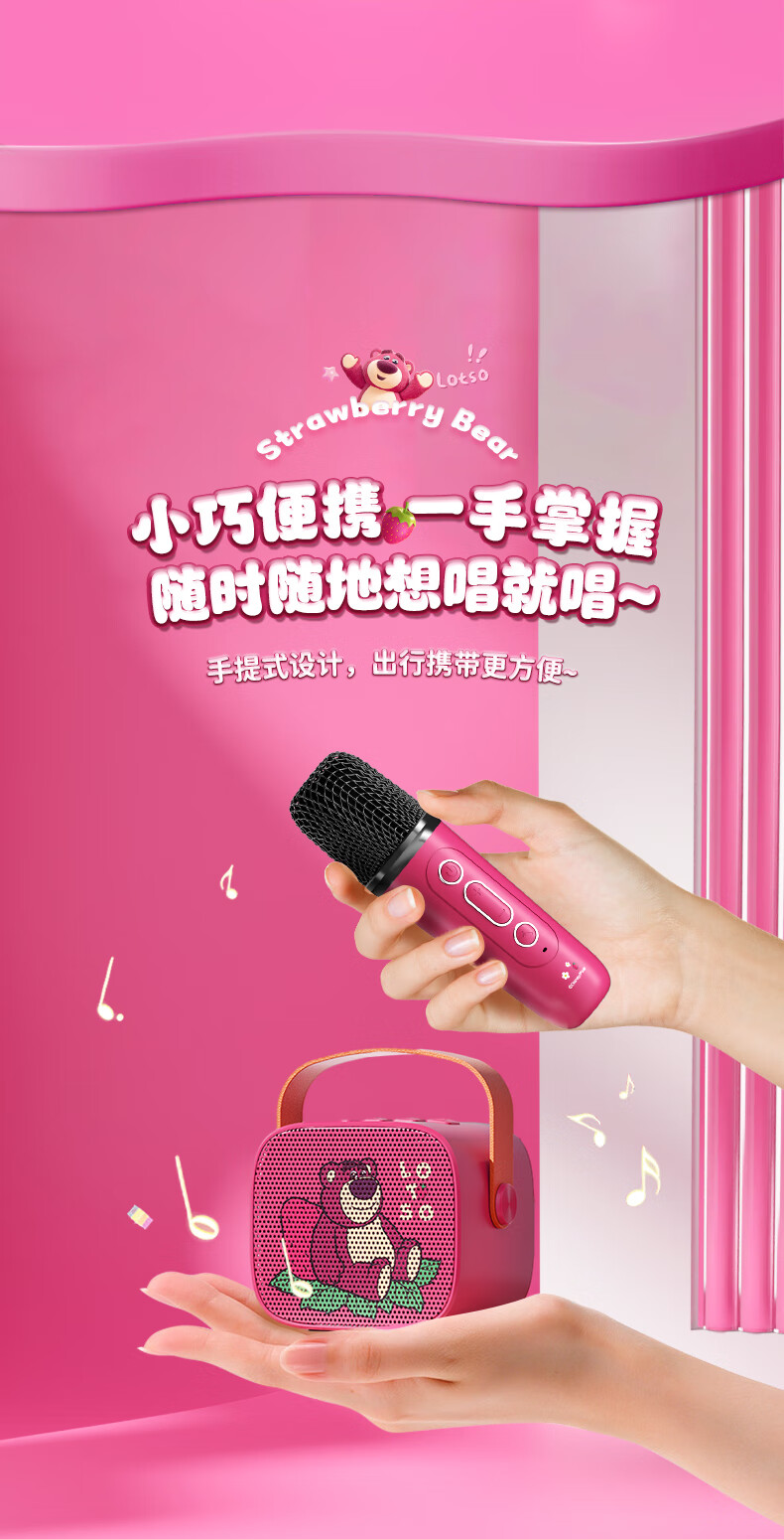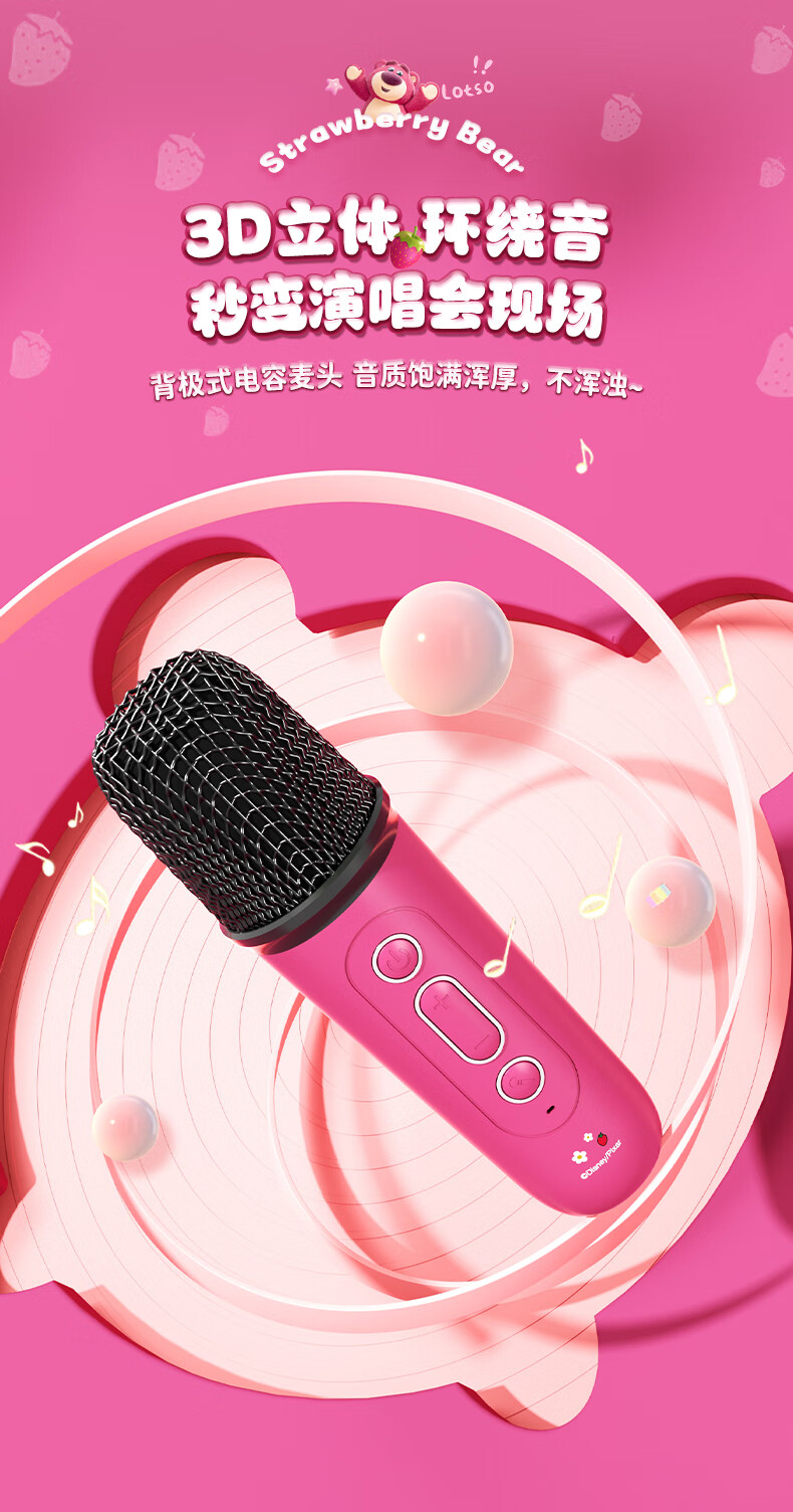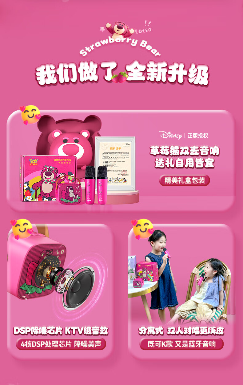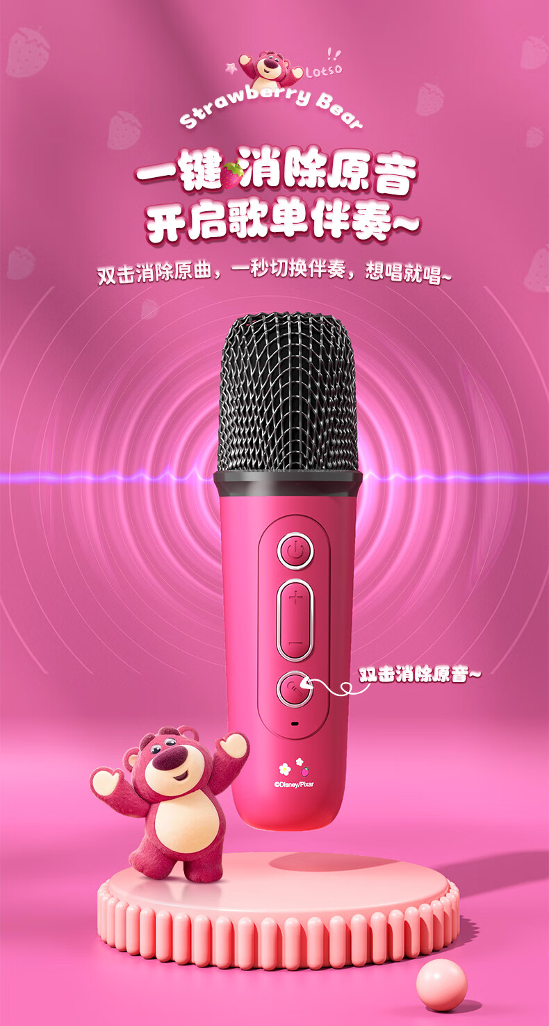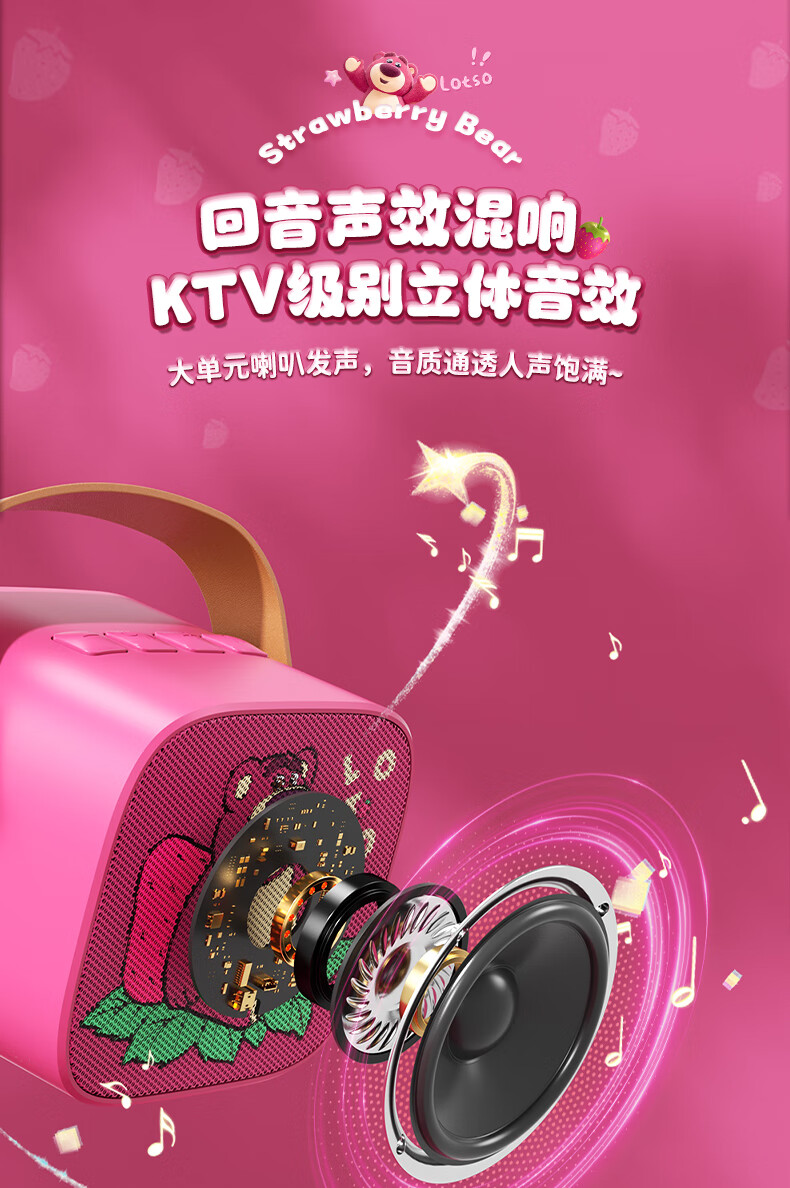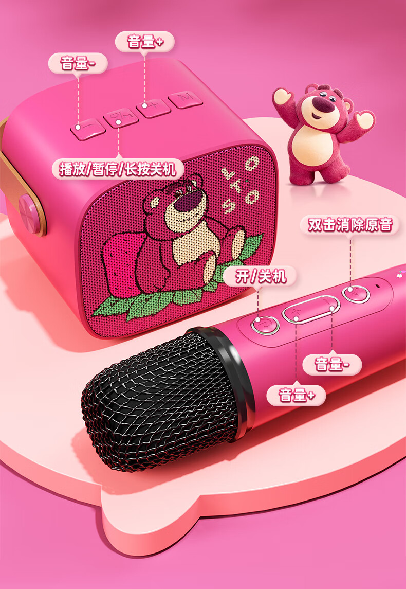 迪士尼话筒儿童玩具女孩生日礼物7-14岁女童6-10女儿8学生4-6小女孩女生草莓熊双麦【立体音响+蓝牙】卡拉ok唱歌机话筒音响一体麦克风