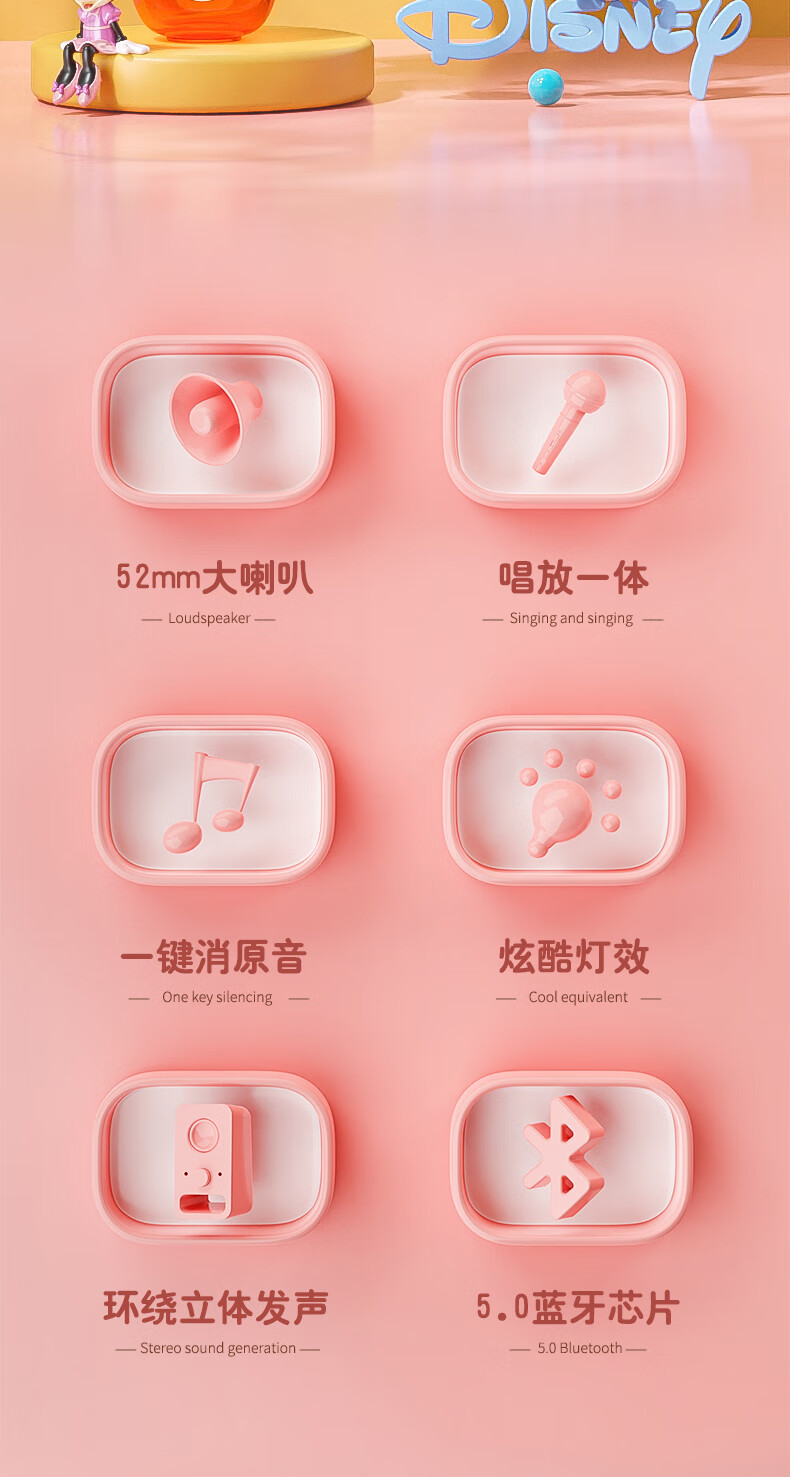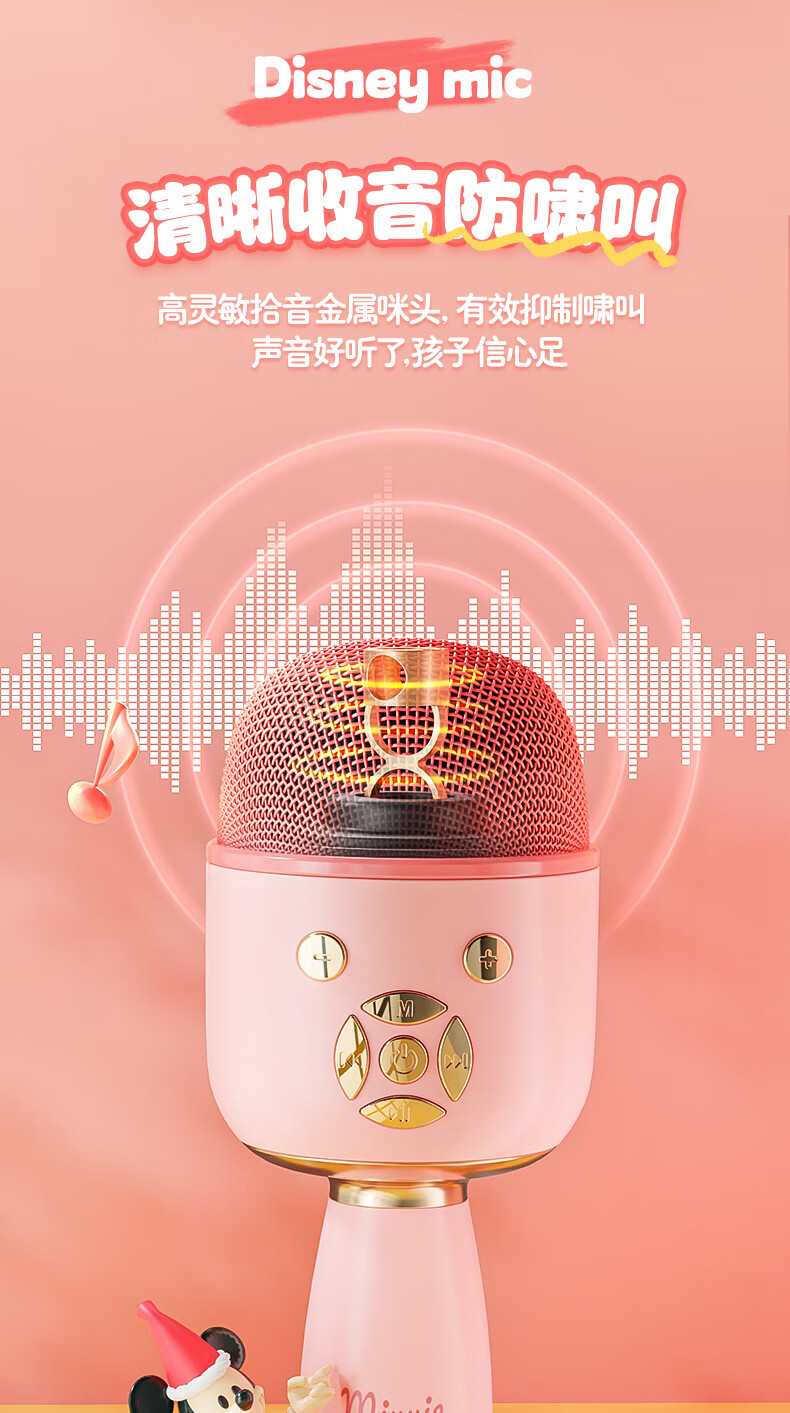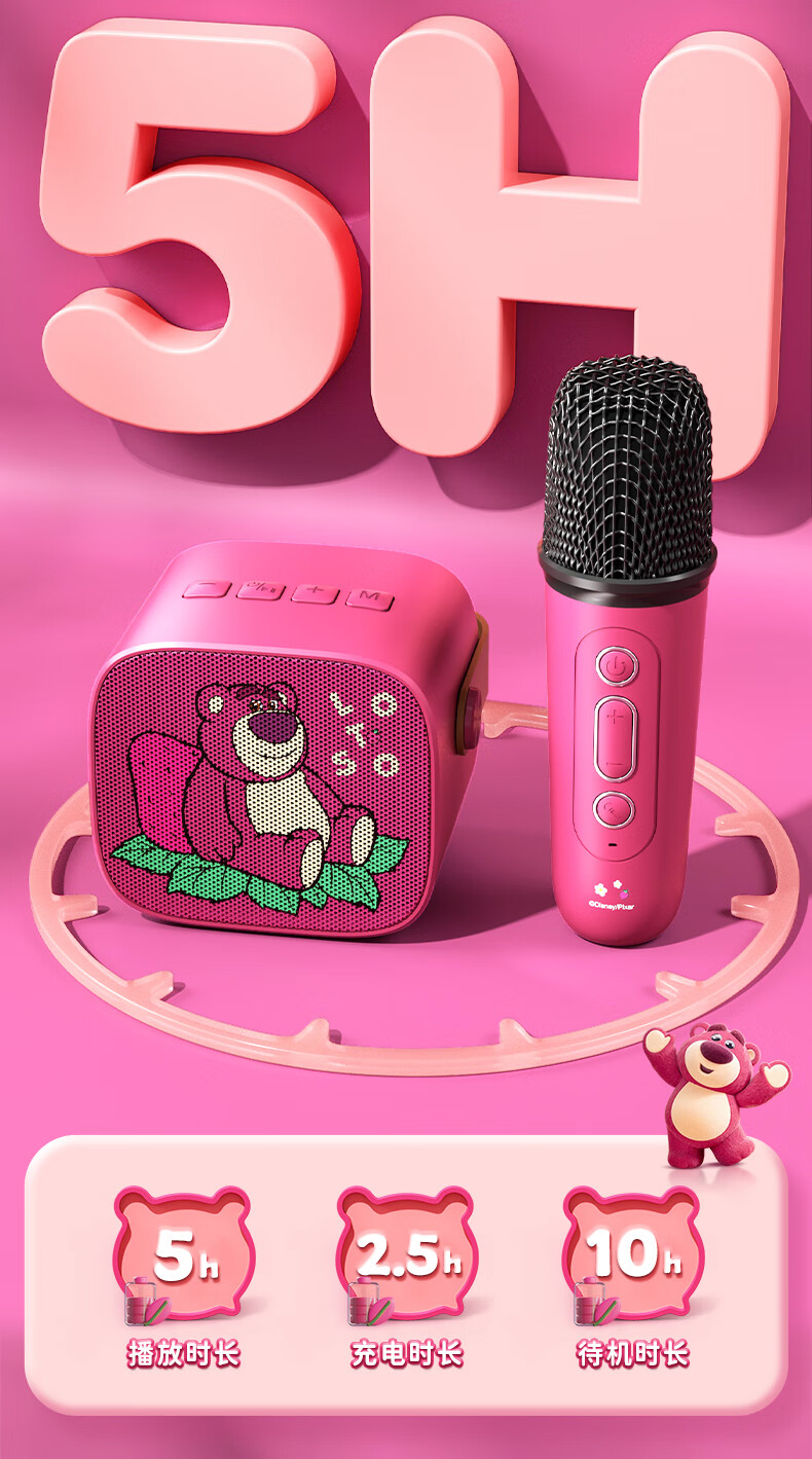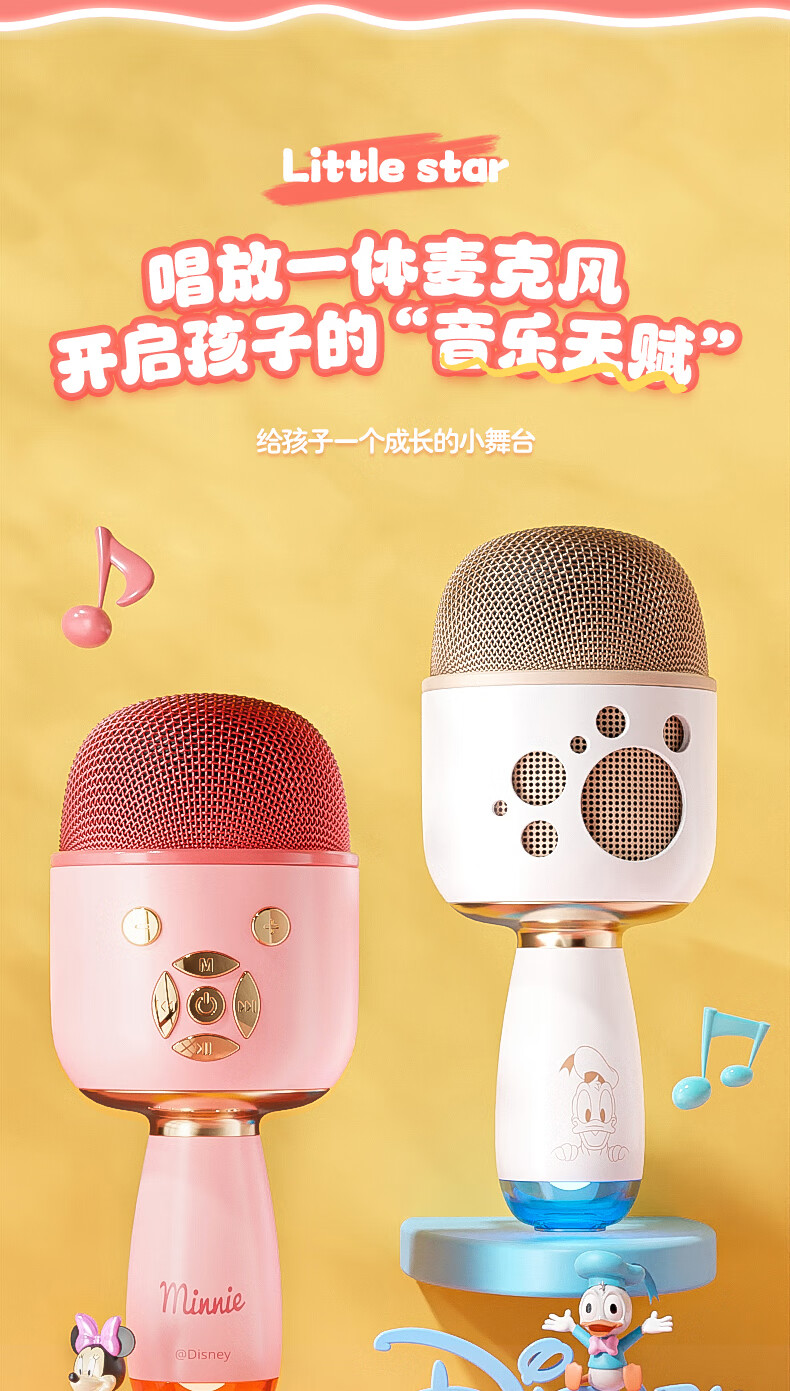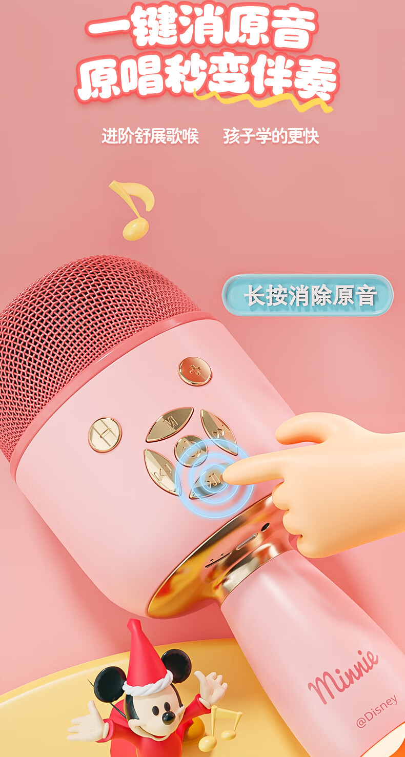 迪士尼话筒儿童玩具女孩生日礼物7-14岁女童6-10女儿8学生4-6小女孩女生草莓熊双麦【立体音响+蓝牙】卡拉ok唱歌机话筒音响一体麦克风