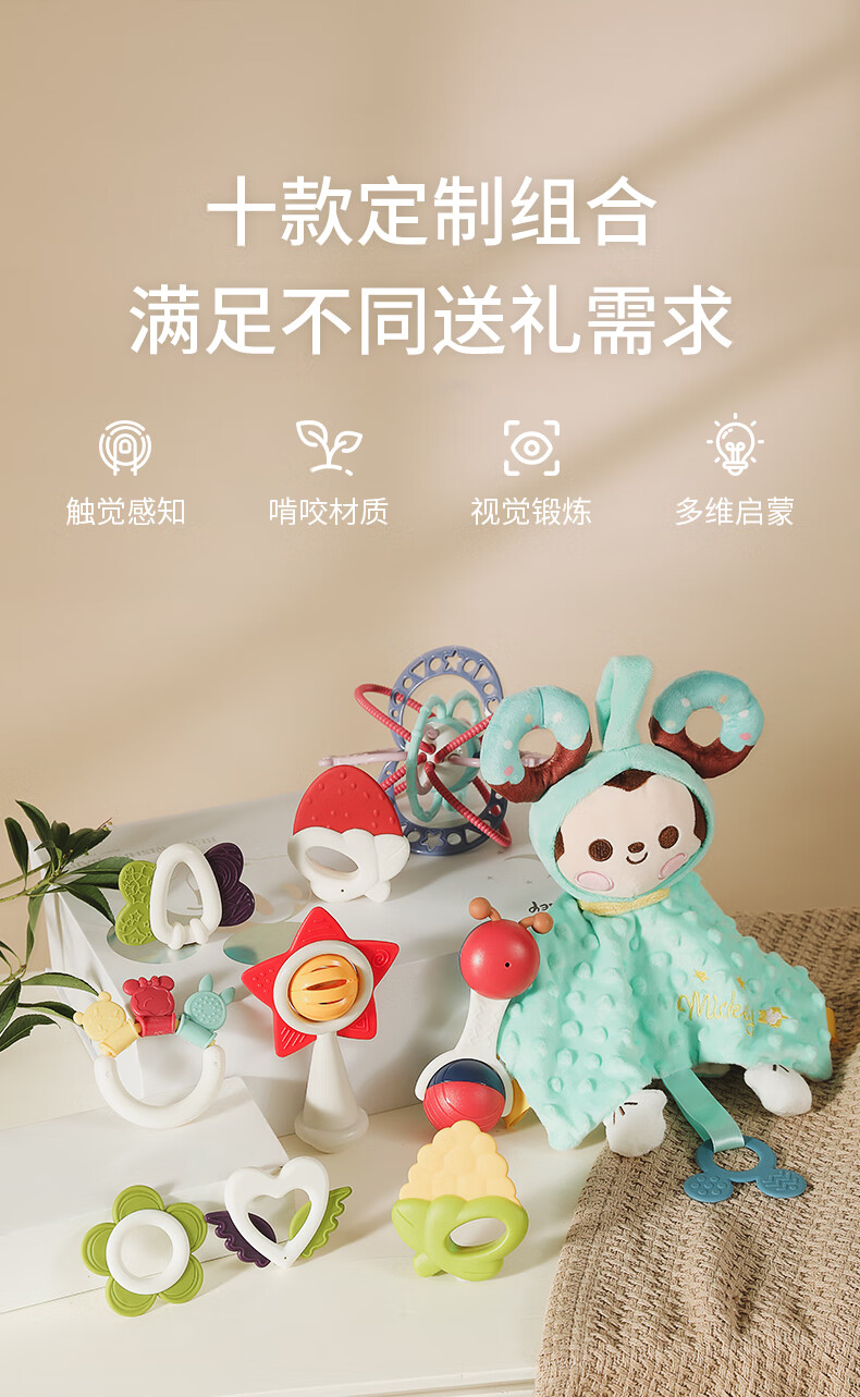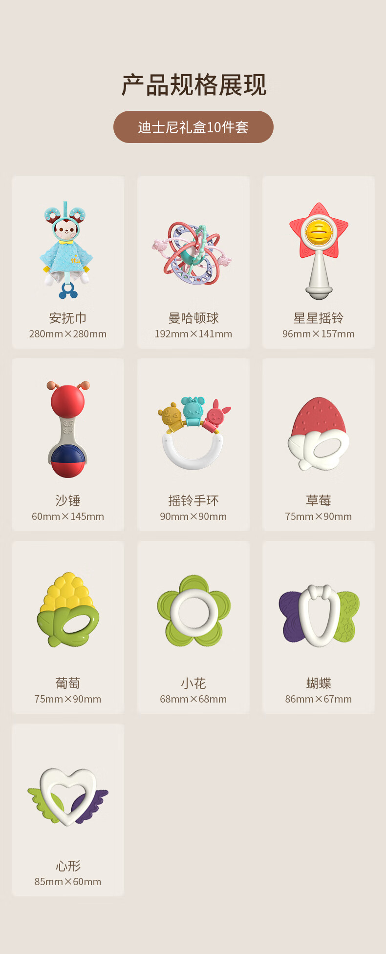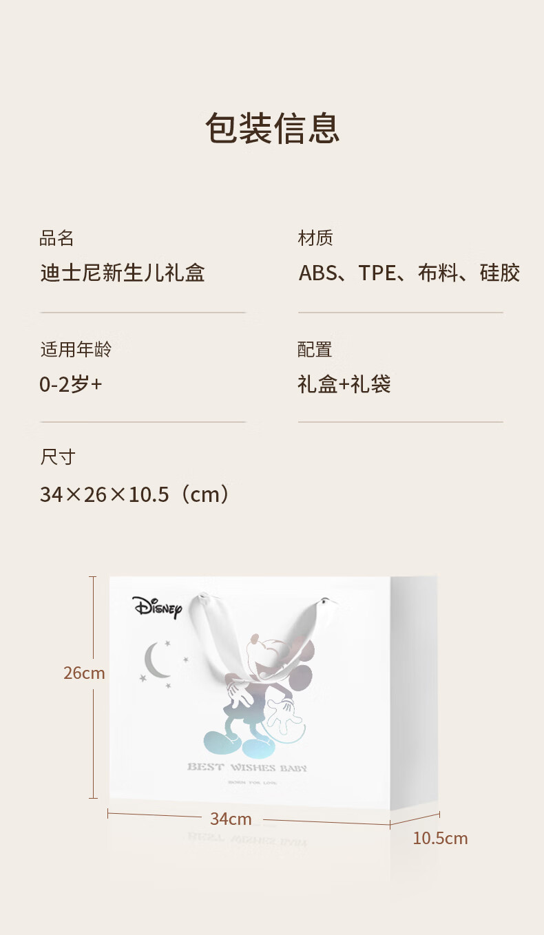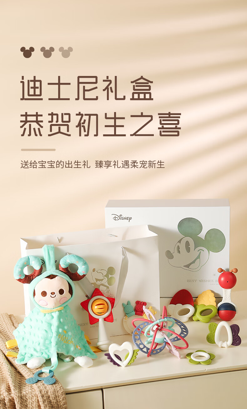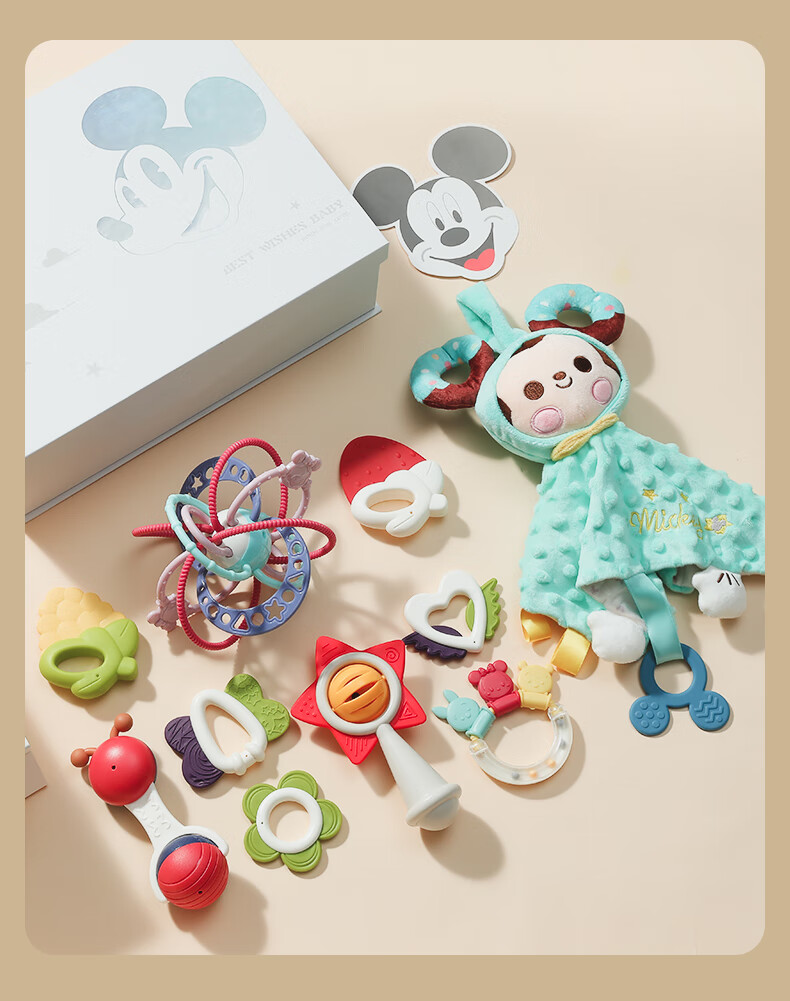 迪士尼(Disney)婴儿礼盒玩具摇铃婴儿玩具0-1岁婴幼儿牙胶安抚巾初生儿礼物满月礼品套装9017