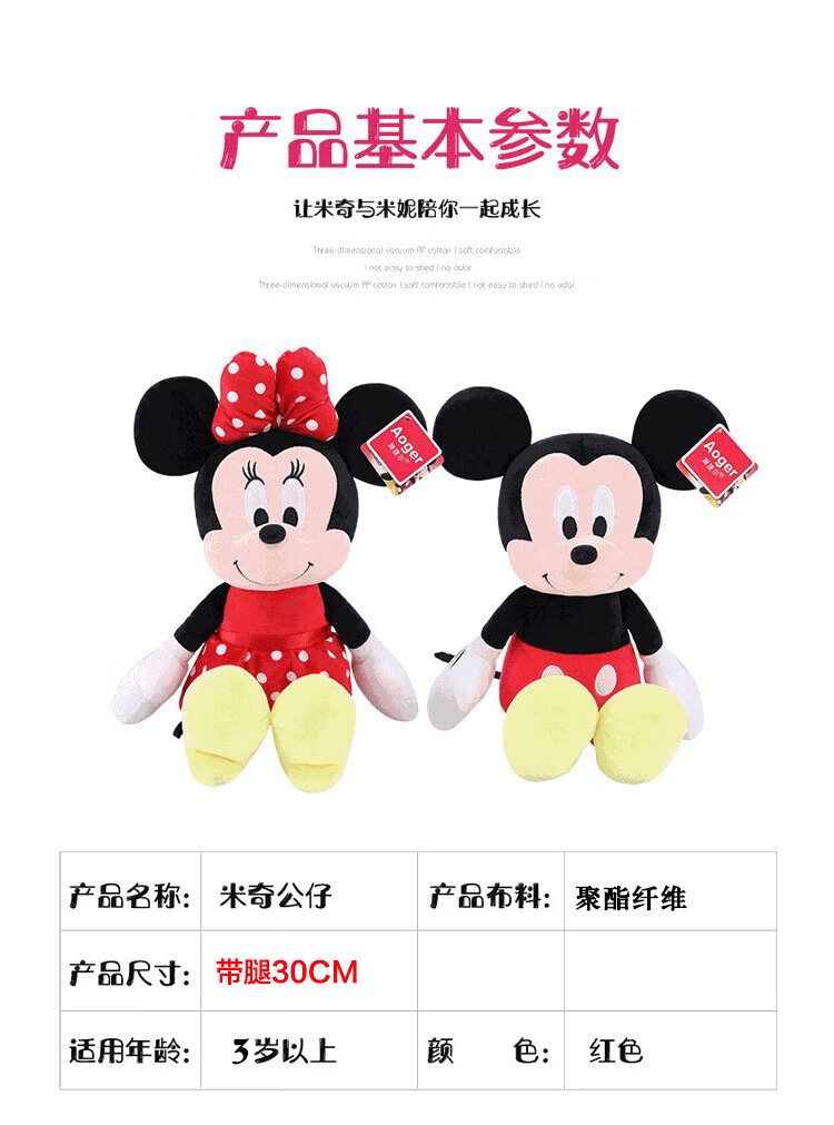迪士尼(Disney)毛绒玩具米老鼠公仔宝宝安抚陪伴玩偶布娃娃送女友老婆女孩生日礼物女生闺蜜创意礼品靠枕男女孩陪睡觉抱枕米奇30cm