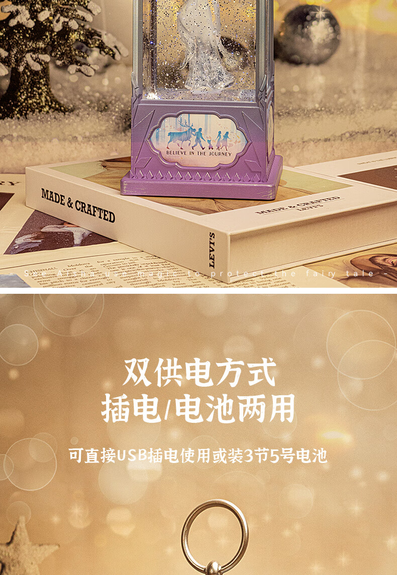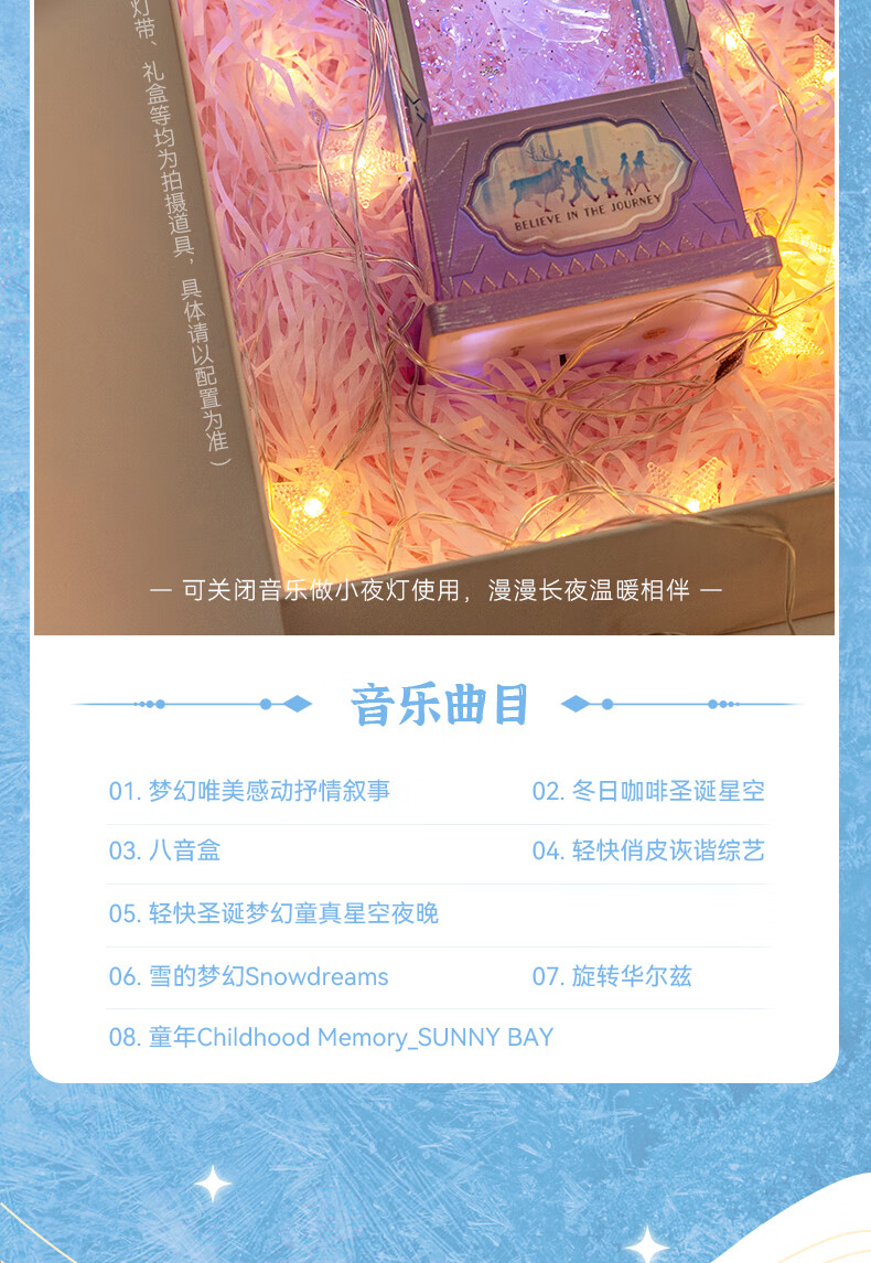 迪士尼(Disney)冰雪奇缘透明艾莎公主旋转声光音乐盒八音盒儿童生日礼物女孩玩具