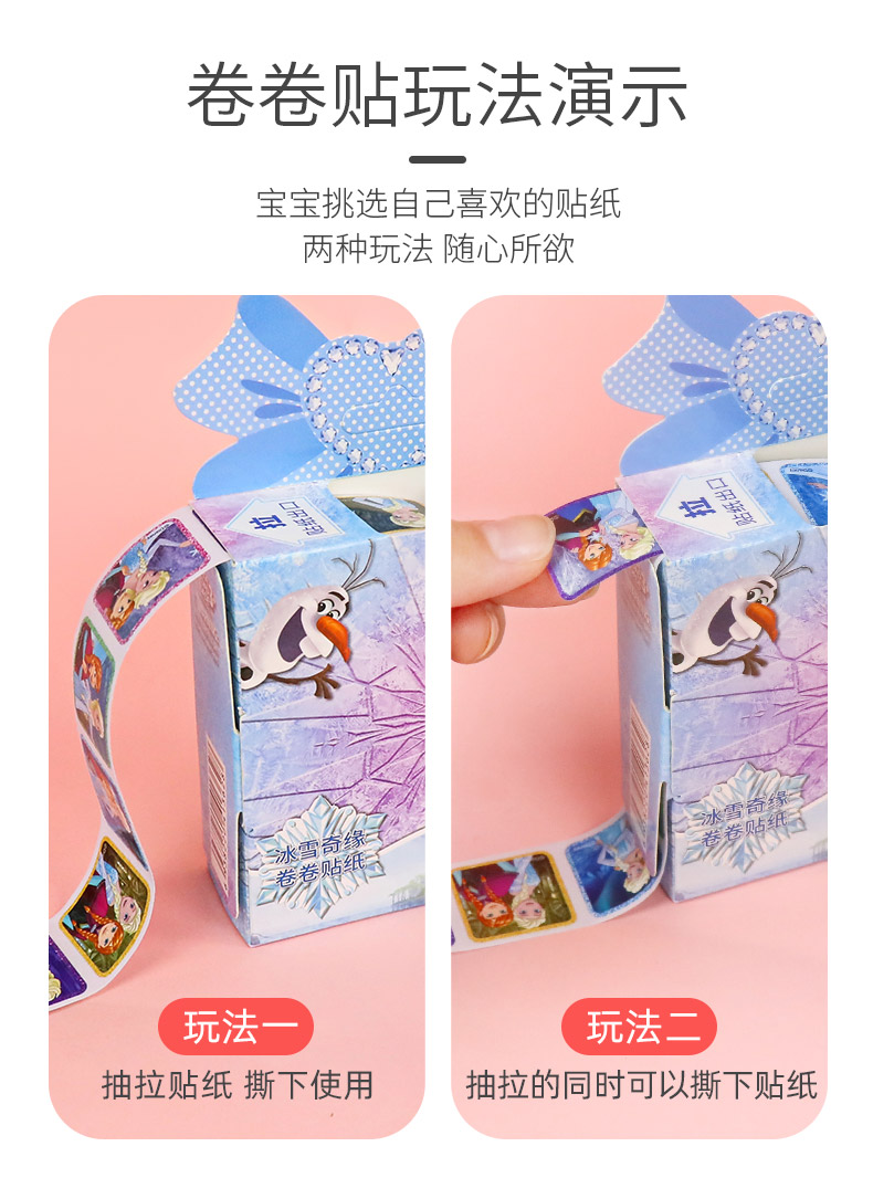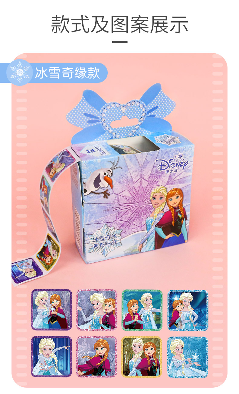 迪士尼儿童冰雪奇缘艾莎公主贴纸【胶卷便携】卡通男女宝宝贴画纸玩具女孩生日礼物