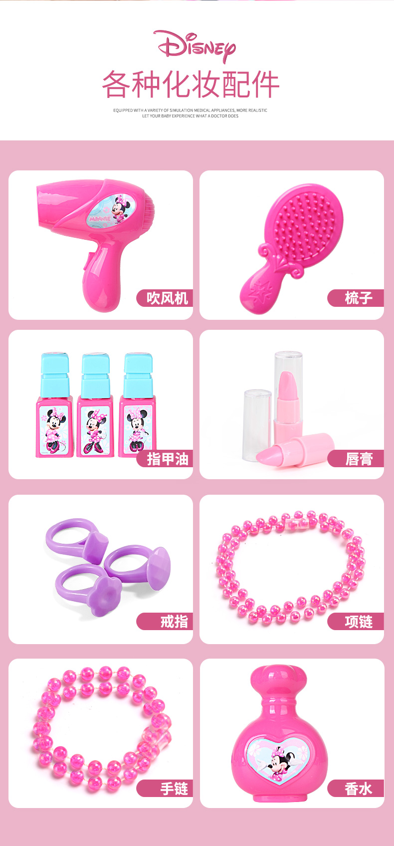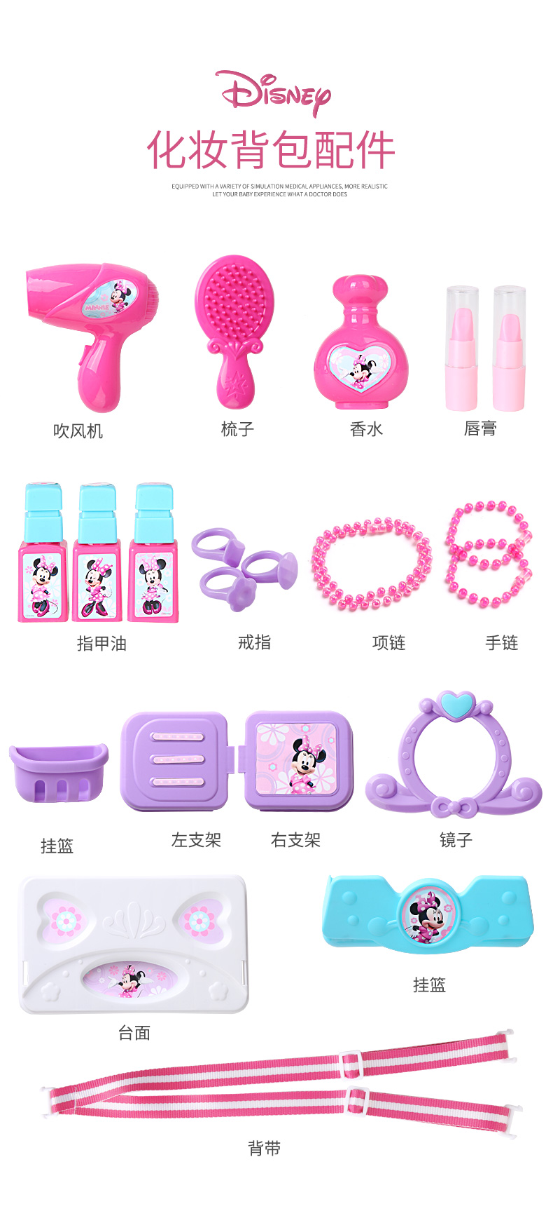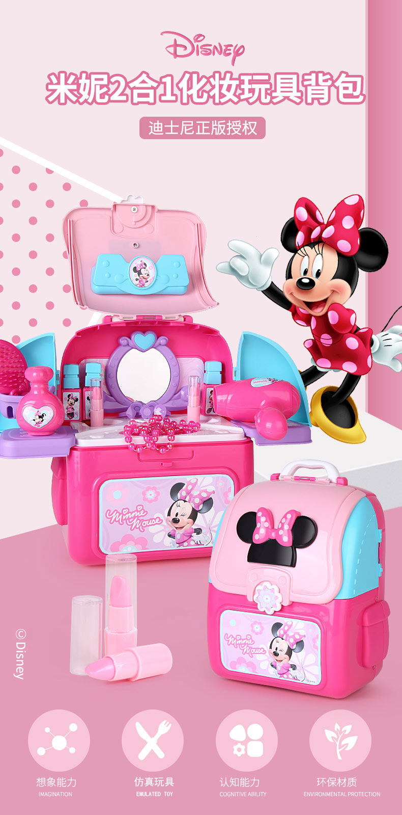 迪士尼(Disney)仿真彩妆玩具女孩米妮系列二合一化妆玩具背包-DS020A生日礼物