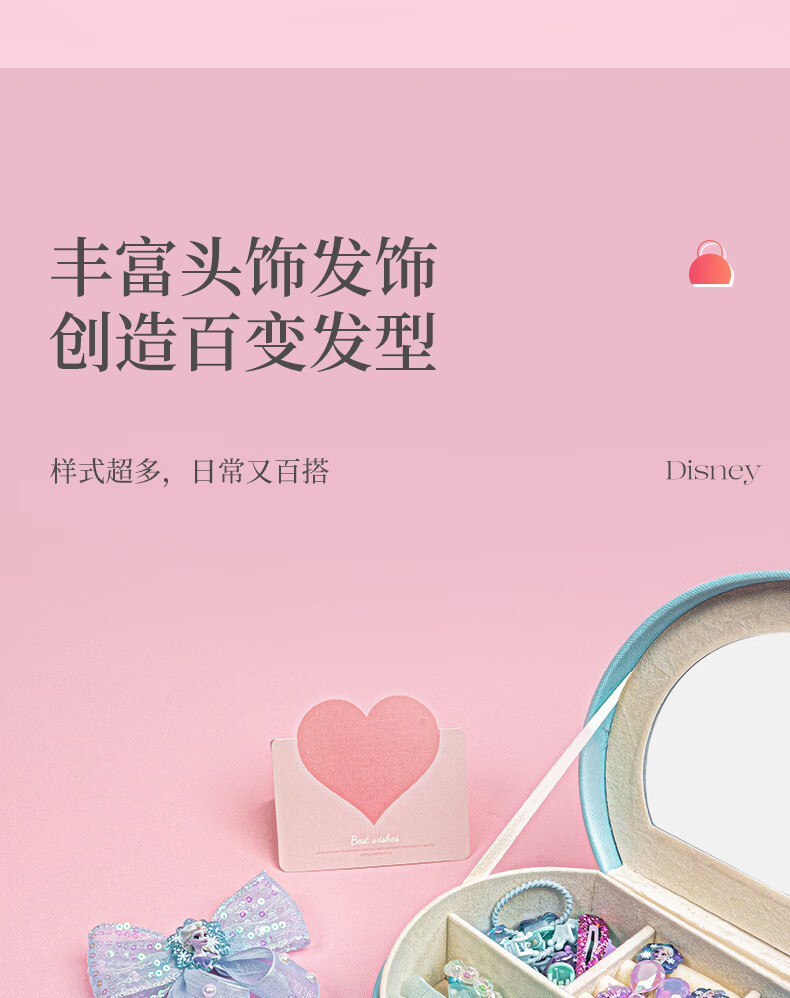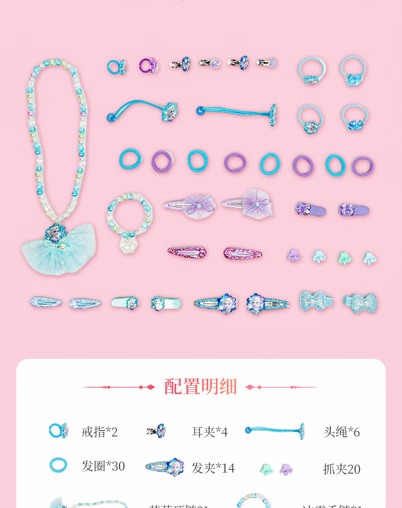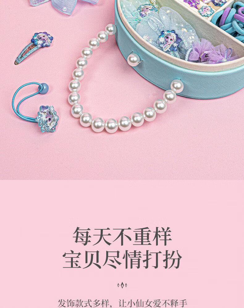 迪士尼(Disney)儿童玩具首饰套装珠链手提礼盒女孩礼物冰雪奇缘发饰串珠项链饰品
