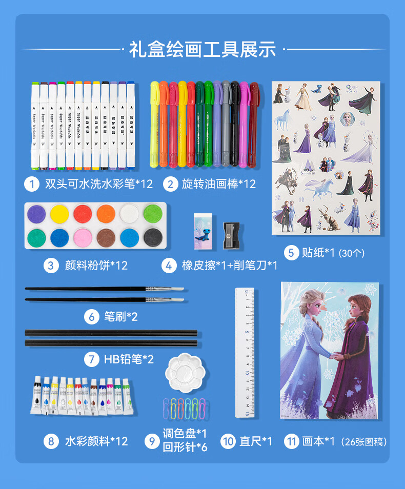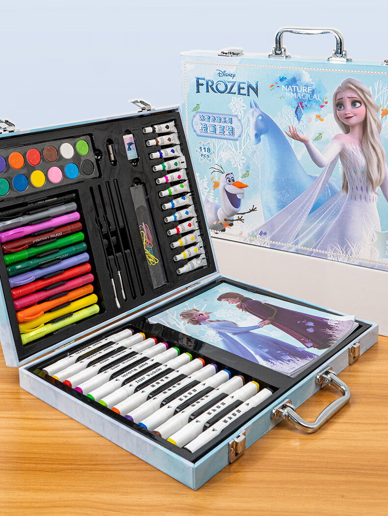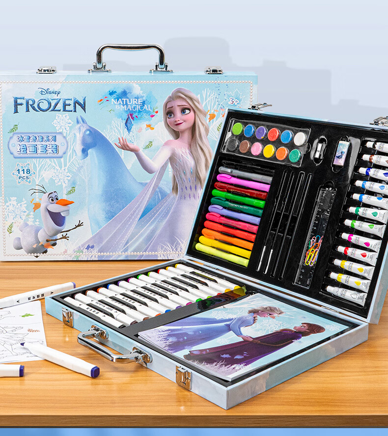 迪士尼儿童玩具画画套装绘画工具全套水彩笔蜡笔冰雪奇缘画本生日礼物