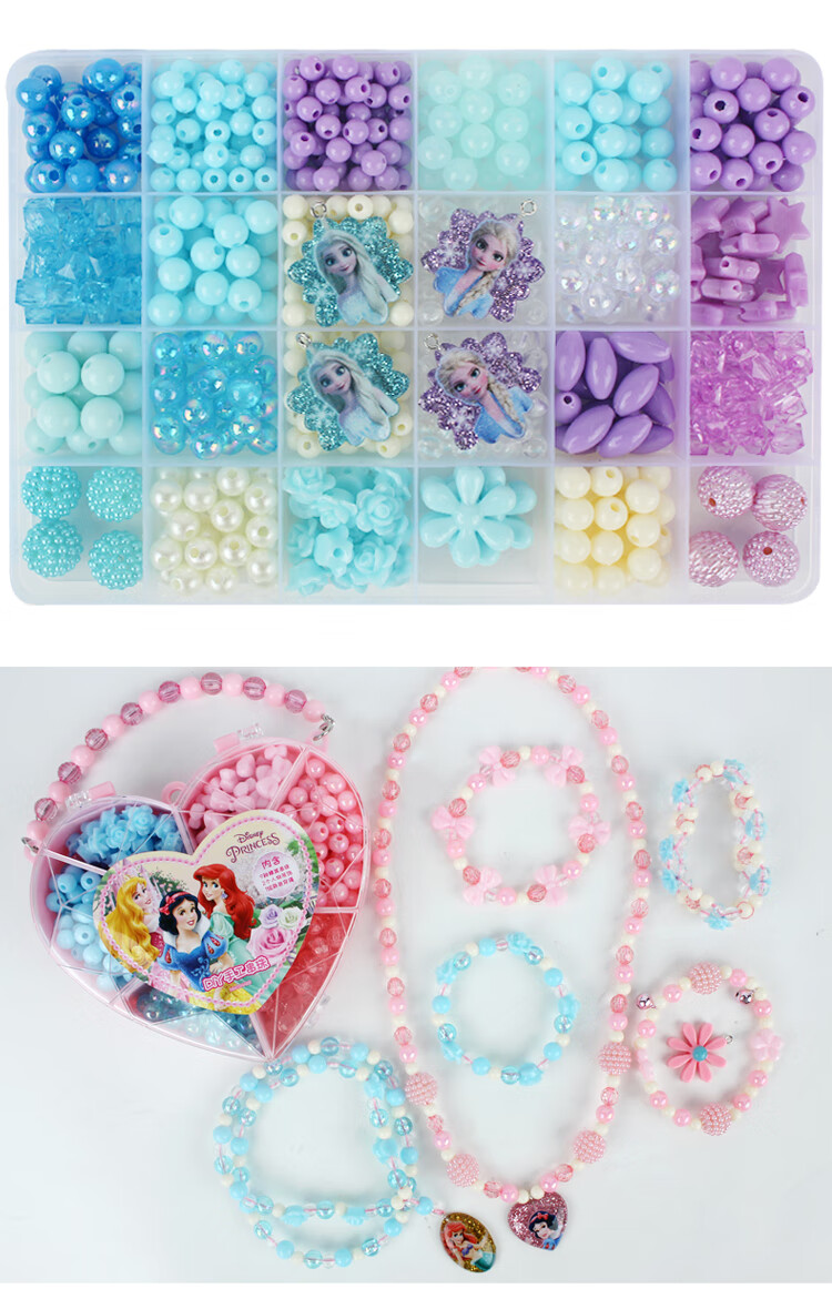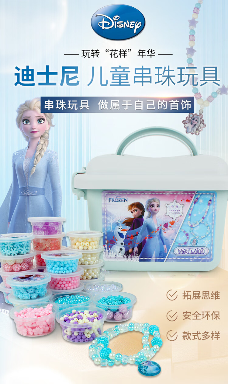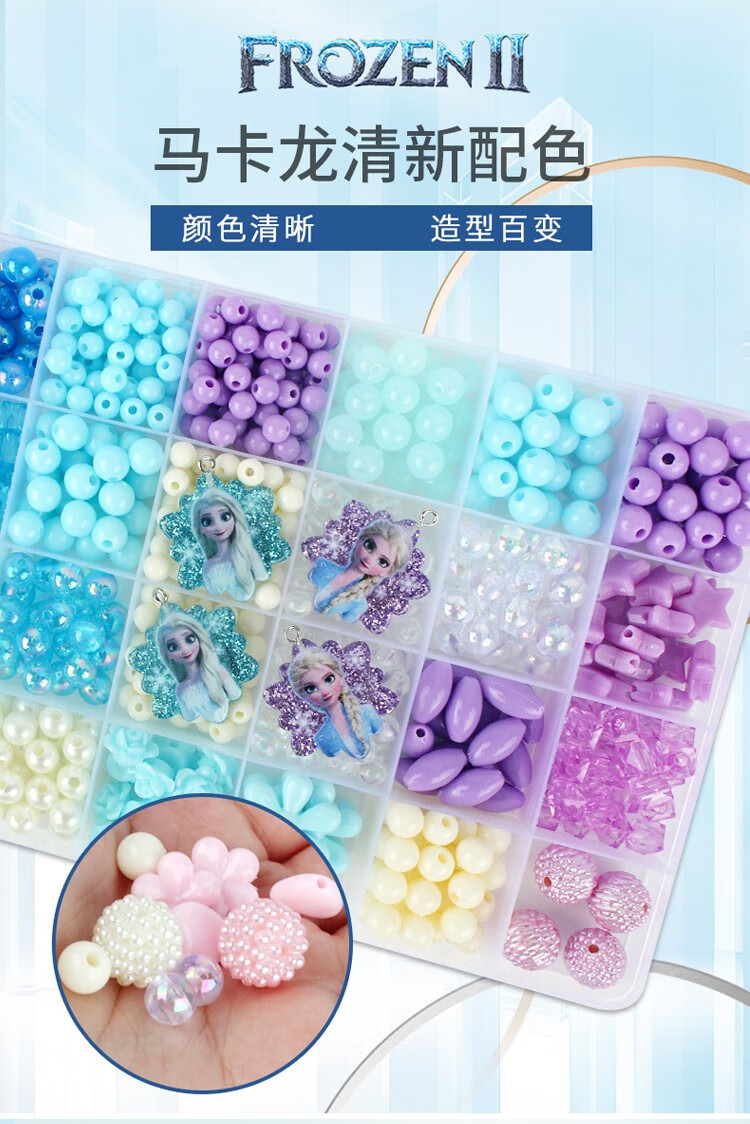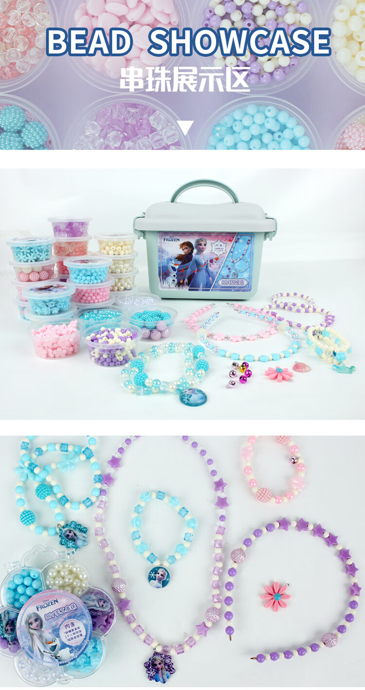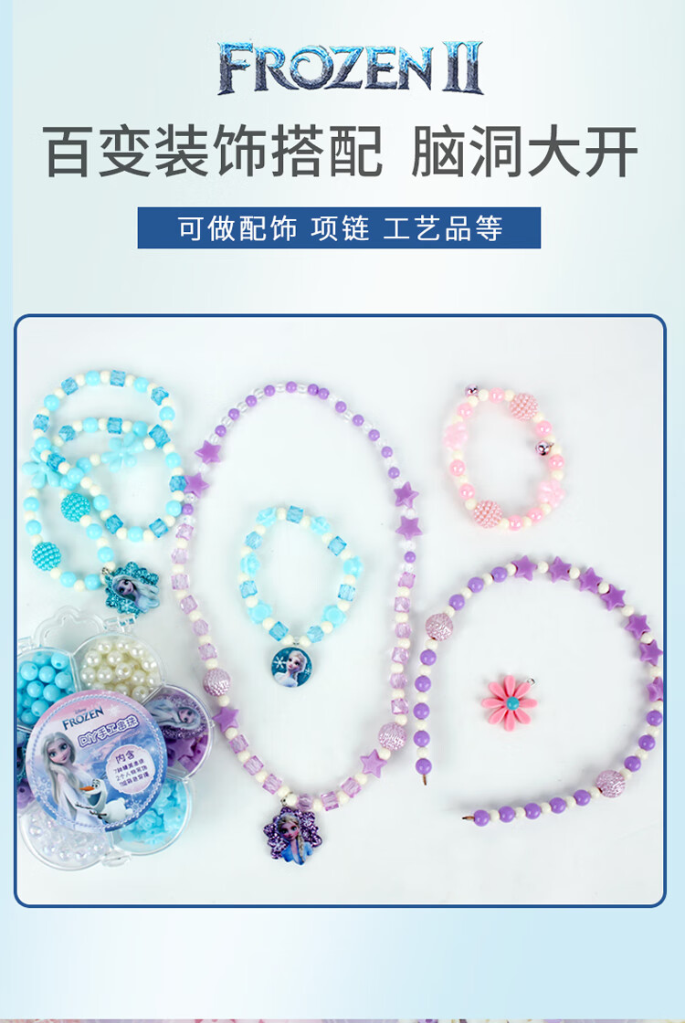 迪士尼冰雪奇缘艾莎公主DIY女孩玩具手工串珠手链项链儿童过家家玩具女孩生日礼物