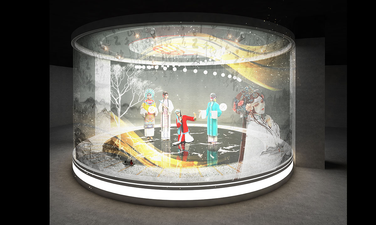 纱幕(白纱幕、黑纱幕、纱画幕)+投影仪+创意策划+视频内容特效制作+融合调试